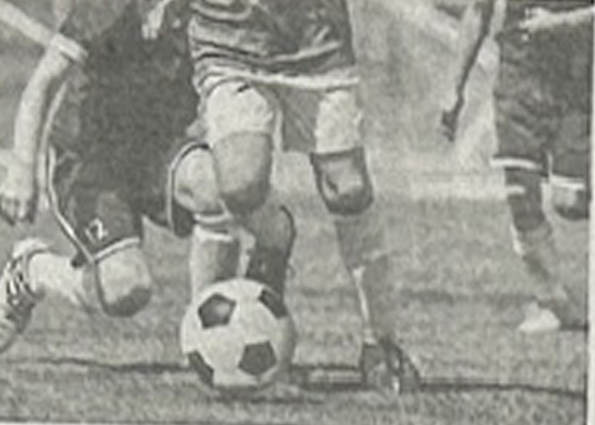 在足球场正在进行足球比赛。一名选手带球向对手的球门快点奔跑。虽然几个对手后卫想追上来抢球,但都被他甩在后面,赶不上。足球是一项在世界上很多国家受欢迎的人气运动。