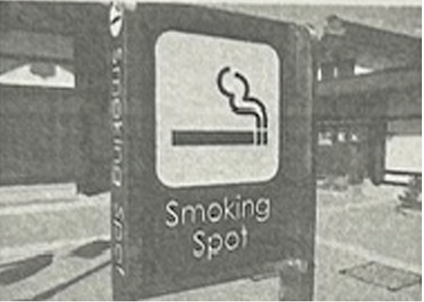 在街头有一个表示这儿可以抽烟的标识。最近在公共场所里大多的地方禁止抽烟,允许抽烟的地方越来越少,所以像照片里的这种标识最近不常见了。看到这个照片,我感觉特别的。